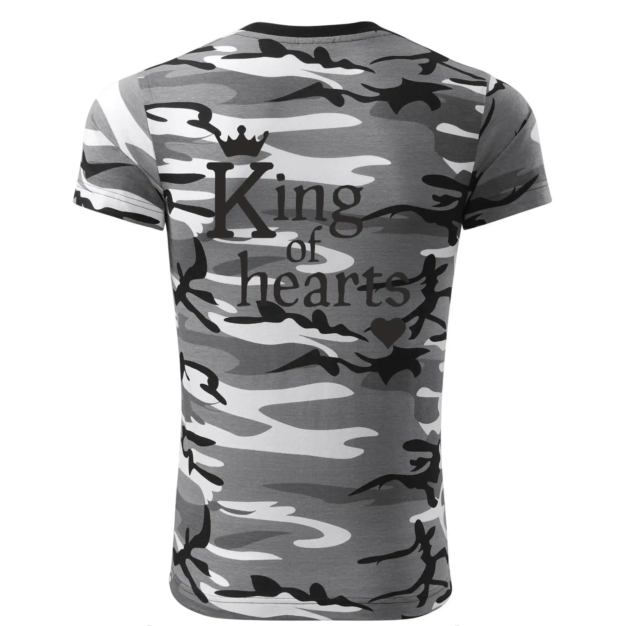 Tričko střední gramáže v barvách camouflage. Střih s bočními švy. Lem průkrčníku ze žebrového úpletu s přídavkem 5 % elastanu. Vnitřní část zadního průkrčníku začištěna páskou v barvě camouflage.