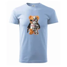 Tričko střední gramáže v barvách camouflage. Střih s bočními švy. Lem průkrčníku ze žebrového úpletu s přídavkem 5 % elastanu. Vnitřní část zadního průkrčníku začištěna páskou v barvě camouflage.