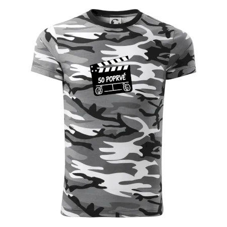 Tričko střední gramáže v barvách camouflage. Střih s bočními švy. Lem průkrčníku ze žebrového úpletu s přídavkem 5 % elastanu. Vnitřní část zadního průkrčníku začištěna páskou v barvě camouflage.
