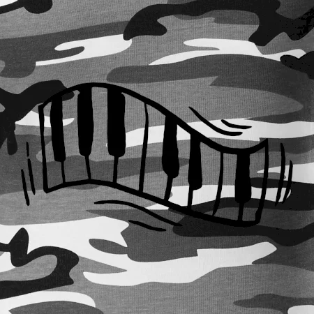 Tričko střední gramáže v barvách camouflage. Střih s bočními švy. Lem průkrčníku ze žebrového úpletu s přídavkem 5 % elastanu. Vnitřní část zadního průkrčníku začištěna páskou v barvě camouflage.