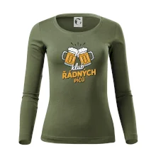 Tolerantnější vypasování dámského střihu, který je vhodný pro všechny typy postavy, ideální délka rukávů a konzervativní výstřih zakončený žebrováním, které skvěle drží tvar.