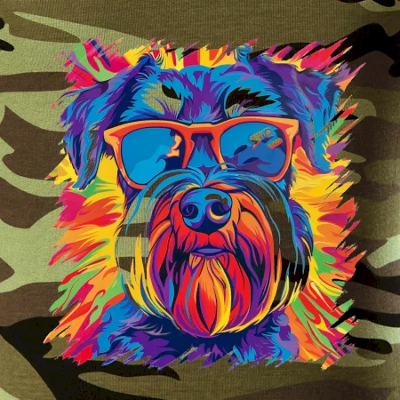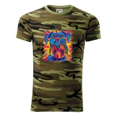 Tričko střední gramáže v barvách camouflage. Střih s bočními švy. Lem průkrčníku ze žebrového úpletu s přídavkem 5 % elastanu. Vnitřní část zadního průkrčníku začištěna páskou v barvě camouflage.