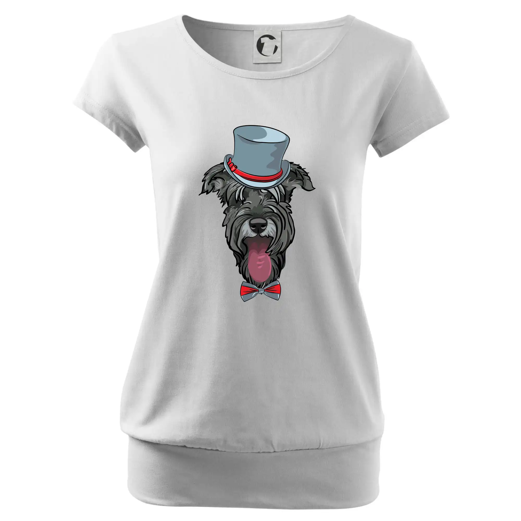 Trendové dámské triko s velmi krátkým rukávem, volnějšího střihu, v dolním kraji všité do širokého lemu. Kulatý průkrčník s úzkým lemem ze shodného materiálu.