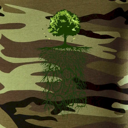 Tričko střední gramáže v barvách camouflage. Střih s bočními švy. Lem průkrčníku ze žebrového úpletu s přídavkem 5 % elastanu. Vnitřní část zadního průkrčníku začištěna páskou v barvě camouflage.