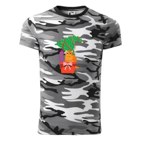 Tričko střední gramáže v barvách camouflage. Střih s bočními švy. Lem průkrčníku ze žebrového úpletu s přídavkem 5 % elastanu. Vnitřní část zadního průkrčníku začištěna páskou v barvě camouflage.