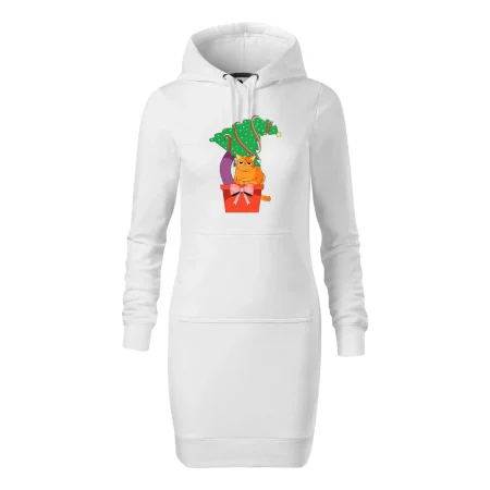 Dámské mikinové šaty MALFINI Snap 419 jsou ideální volbou pro ženy, které hledají pohodlný a stylový kousek pro volný čas nebo každodenní nošení. Lehce vypasovaný střih s bočními švy podtrhuje ženskou siluetu, zatímco kapuce s podšívkou a stahovací šňůrkou dodává ležérní vzhled. Šaty mají délku nad kolena a jsou vybaveny nakládanou kapsou ve stylu „klokanky“. Materiál je měkký a příjemný na dotek díky směsi bavlny a polyesteru s nepočesanou vnitřní stranou.