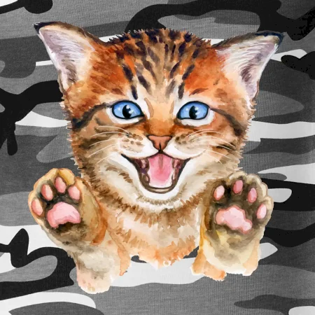 Tričko střední gramáže v barvách camouflage. Střih s bočními švy. Lem průkrčníku ze žebrového úpletu s přídavkem 5 % elastanu. Vnitřní část zadního průkrčníku začištěna páskou v barvě camouflage.