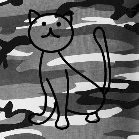 Tričko střední gramáže v barvách camouflage. Střih s bočními švy. Lem průkrčníku ze žebrového úpletu s přídavkem 5 % elastanu. Vnitřní část zadního průkrčníku začištěna páskou v barvě camouflage.