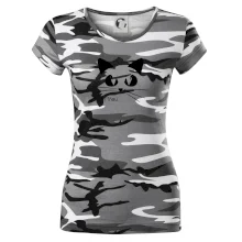 Decentní tričko s kočkou na prsou.
