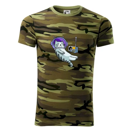 Tričko střední gramáže v barvách camouflage. Střih s bočními švy. Lem průkrčníku ze žebrového úpletu s přídavkem 5 % elastanu. Vnitřní část zadního průkrčníku začištěna páskou v barvě camouflage.