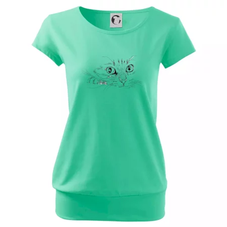 Trendové dámské triko s velmi krátkým rukávem, volnějšího střihu, v dolním kraji všité do širokého lemu. Kulatý průkrčník s úzkým lemem ze shodného materiálu.