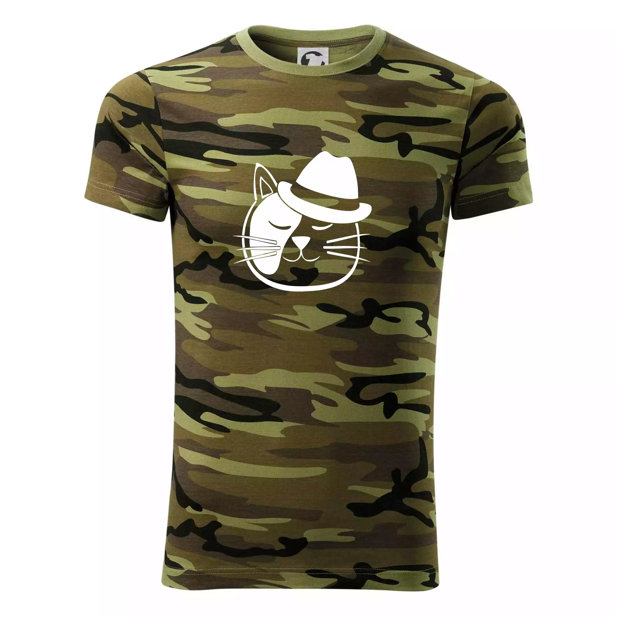 Tričko střední gramáže v barvách camouflage. Střih s bočními švy. Lem průkrčníku ze žebrového úpletu s přídavkem 5 % elastanu. Vnitřní část zadního průkrčníku začištěna páskou v barvě camouflage.