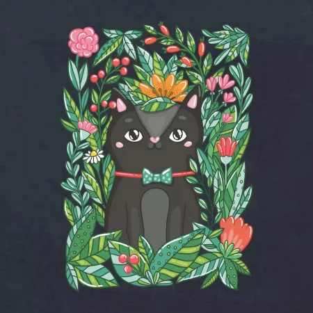 Kočka s květy malovaná