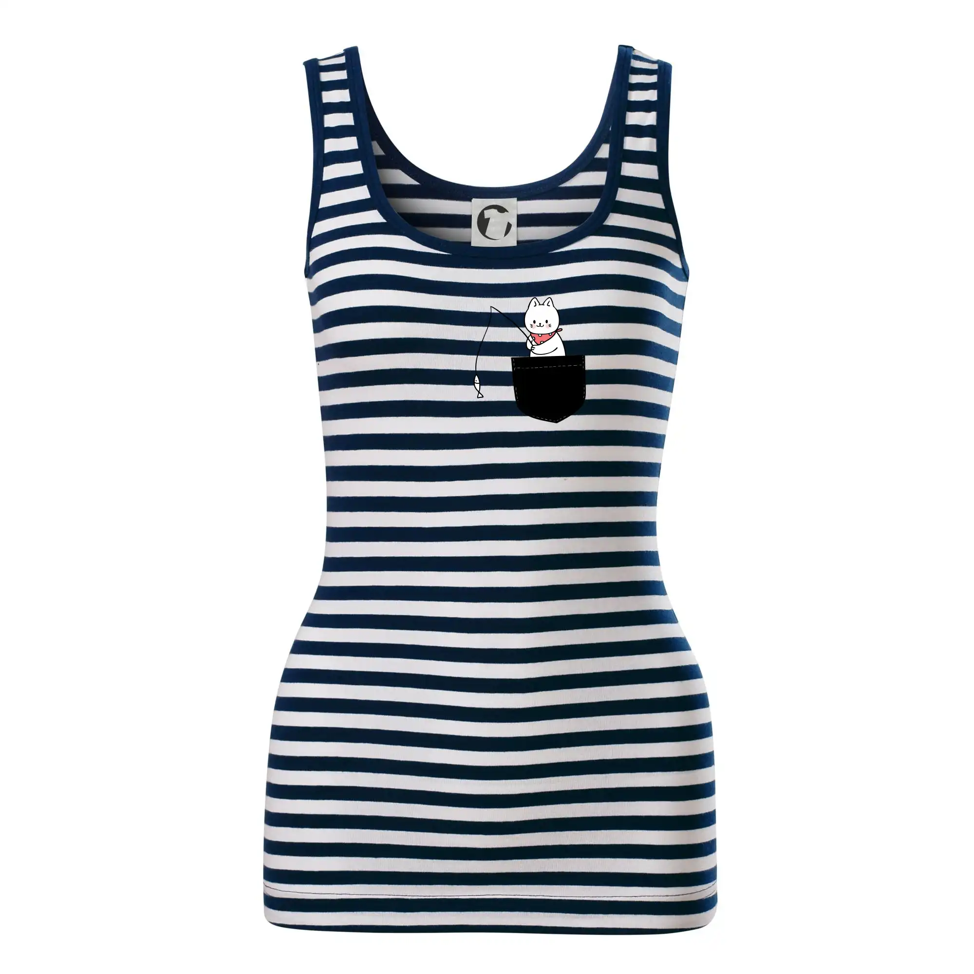 Dámské tílko MALFINI Sailor Top 806 přináší ikonický námořnický vzhled s bílo-modrými pruhy, ideální pro letní dny, výlety nebo ležérní outfity.