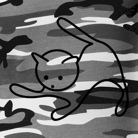 Tričko střední gramáže v barvách camouflage. Střih s bočními švy. Lem průkrčníku ze žebrového úpletu s přídavkem 5 % elastanu. Vnitřní část zadního průkrčníku začištěna páskou v barvě camouflage.