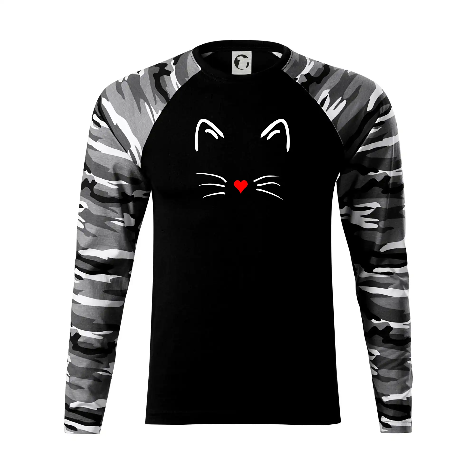 Kočka - srdce místo nosu - Camouflage LS