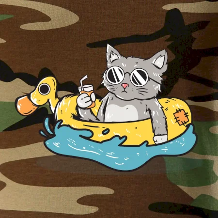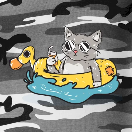 Tričko střední gramáže v barvách camouflage. Střih s bočními švy. Lem průkrčníku ze žebrového úpletu s přídavkem 5 % elastanu. Vnitřní část zadního průkrčníku začištěna páskou v barvě camouflage.