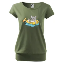 Trendové dámské triko s velmi krátkým rukávem, volnějšího střihu, v dolním kraji všité do širokého lemu. Kulatý průkrčník s úzkým lemem ze shodného materiálu.