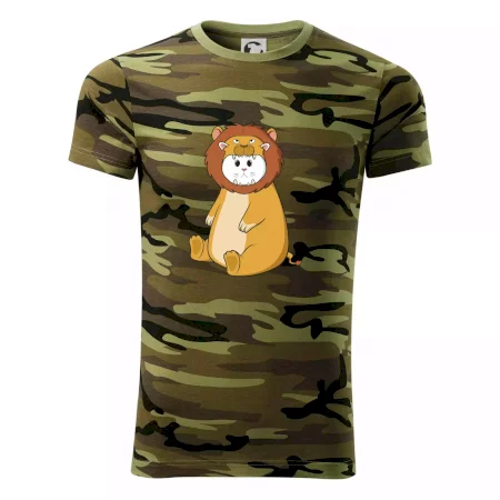 Tričko střední gramáže v barvách camouflage. Střih s bočními švy. Lem průkrčníku ze žebrového úpletu s přídavkem 5 % elastanu. Vnitřní část zadního průkrčníku začištěna páskou v barvě camouflage.