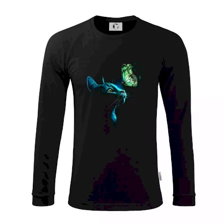 Kočka ve tmě a motýl