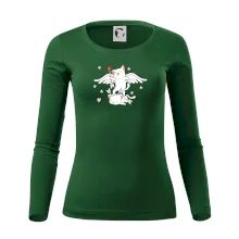 Tolerantnější vypasování dámského střihu, který je vhodný pro všechny typy postavy, ideální délka rukávů a konzervativní výstřih zakončený žebrováním, které skvěle drží tvar.