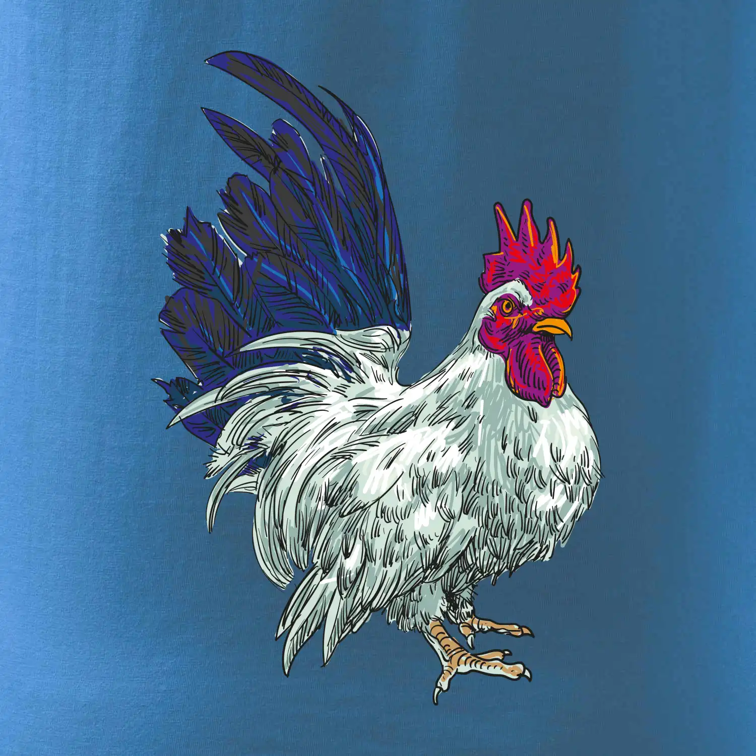 Kohout kreslený bílý