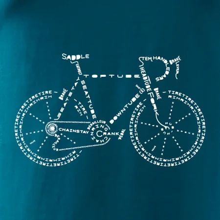 Jezdíš rád na kole? Pak se ti určitě bude líbit tohle cyklistické tričko. Sedlo, řidítka, šlapka, ... kolo na tričku je poskládáno z názvů jednotlivých dílů kola. Triko pro cyklistu potěší každého, kdo rád jezdí na kole. Dárek pro cyklistu.