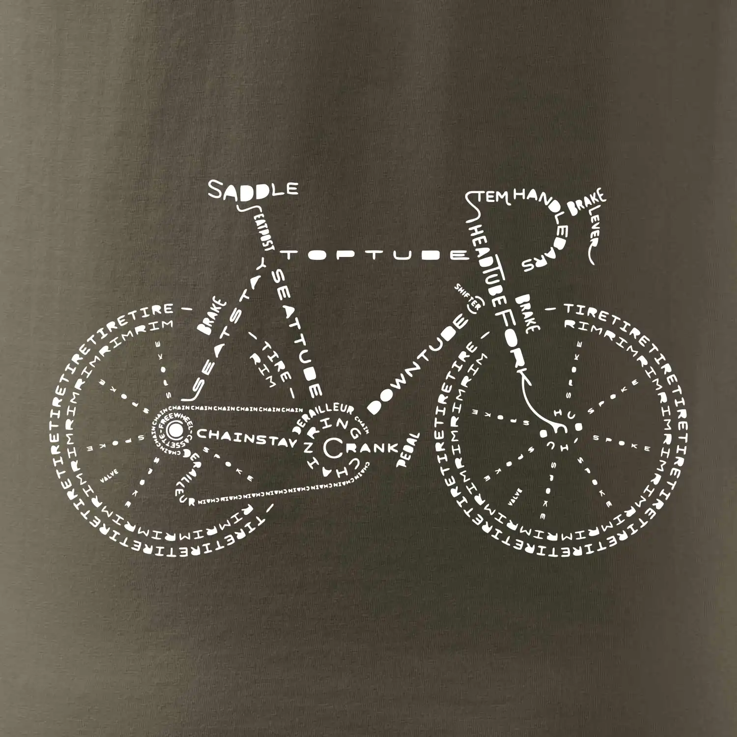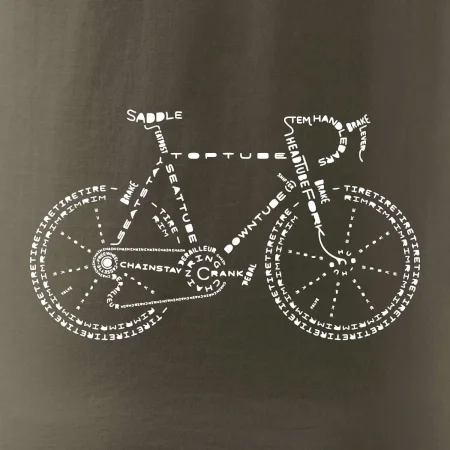 Jezdíš rád na kole? Pak se ti určitě bude líbit tohle cyklistické tričko. Sedlo, řidítka, šlapka, ... kolo na tričku je poskládáno z názvů jednotlivých dílů kola. Triko pro cyklistu potěší každého, kdo rád jezdí na kole. Dárek pro cyklistu.