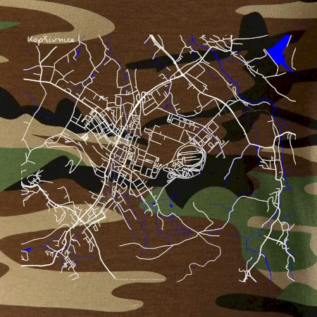 Tričko střední gramáže v barvách camouflage. Střih s bočními švy. Lem průkrčníku ze žebrového úpletu s přídavkem 5 % elastanu. Vnitřní část zadního průkrčníku začištěna páskou v barvě camouflage.