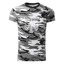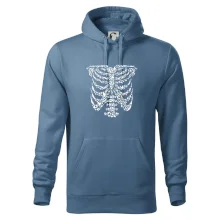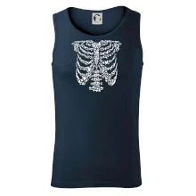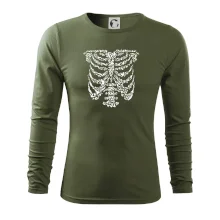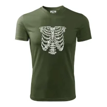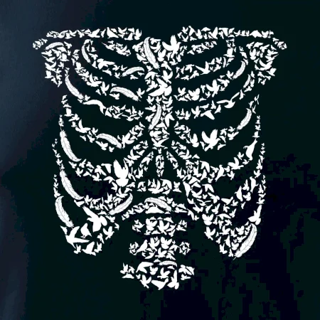 Umělecká kombinace ptáčků a kostry na triku.