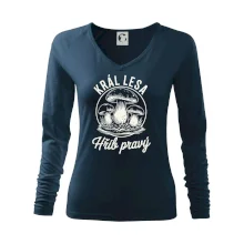 Tolerantnější vypasování dámského střihu, který je vhodný pro všechny typy postavy, ideální délka rukávů a konzervativní výstřih zakončený žebrováním, které skvěle drží tvar.