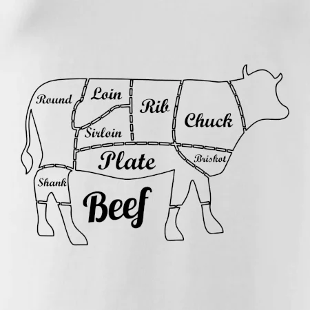 Kráva nákres rozřezání Anglicky