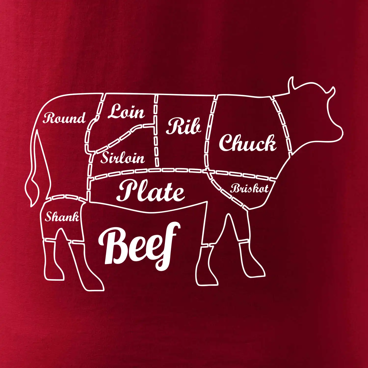 Kráva nákres rozřezání Anglicky