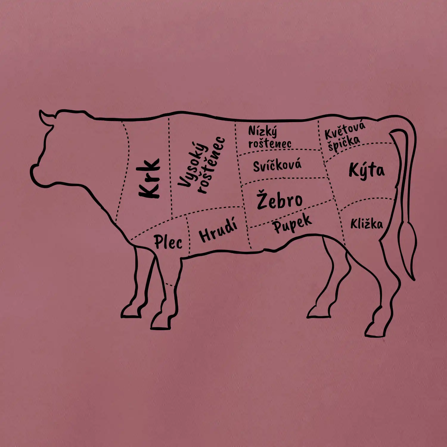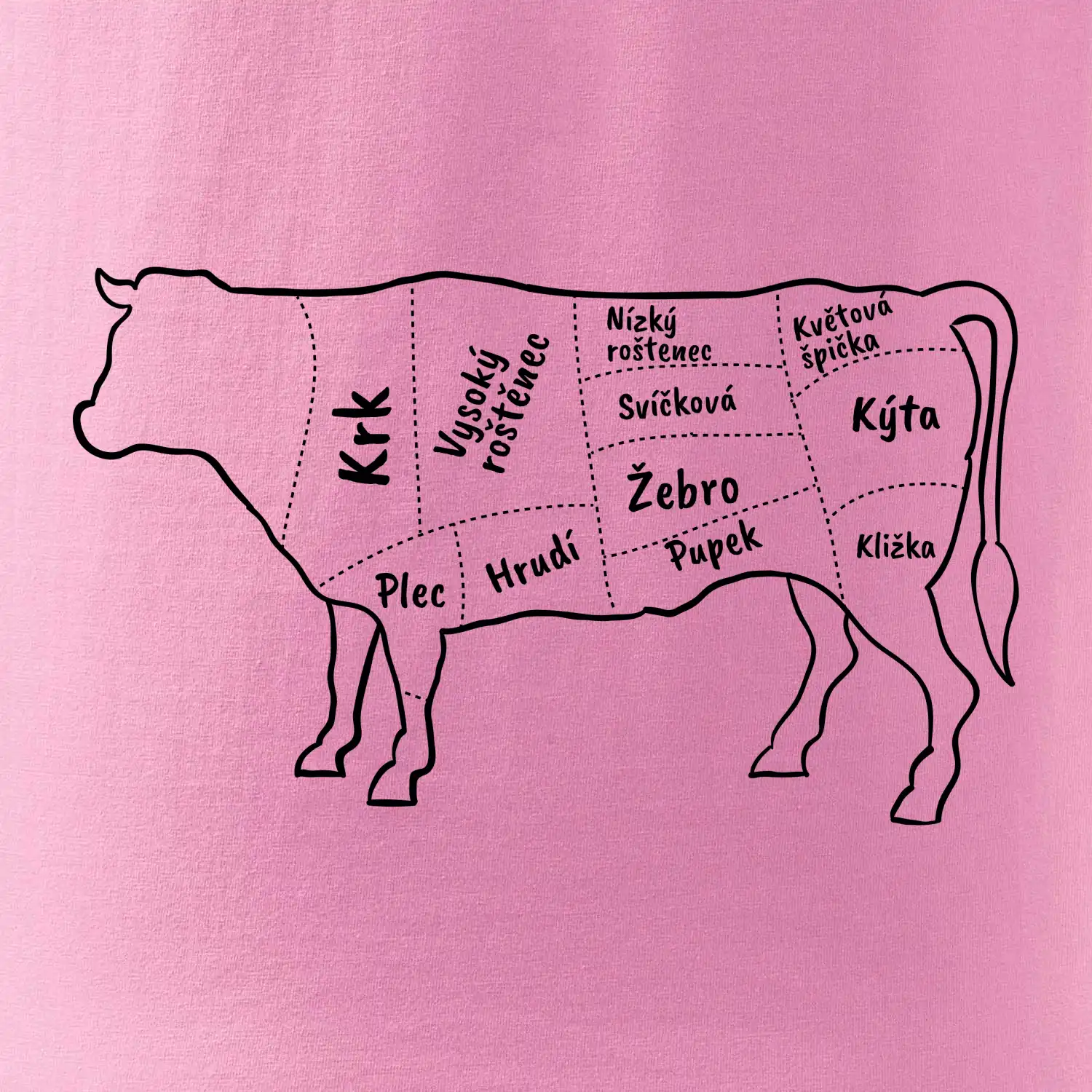 Kráva nákres s názvy