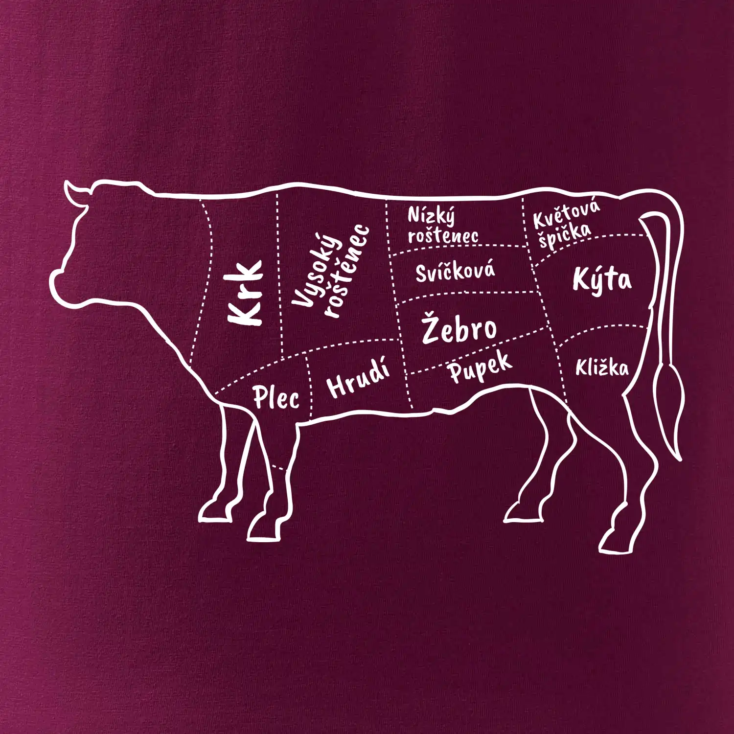 Kráva nákres s názvy