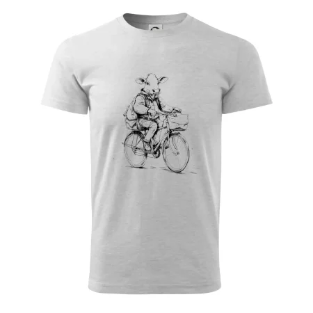 Kráva v obleku na kole