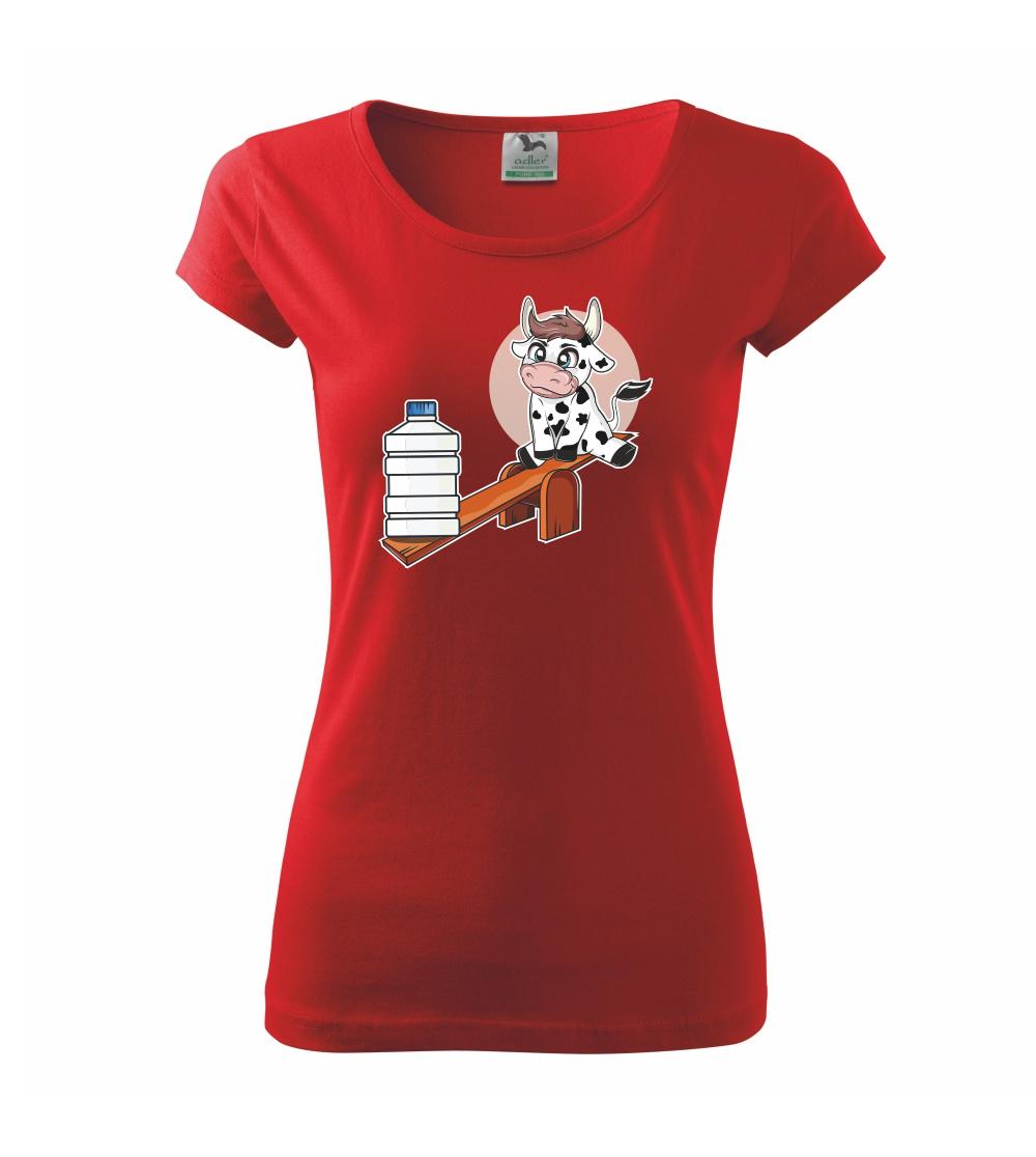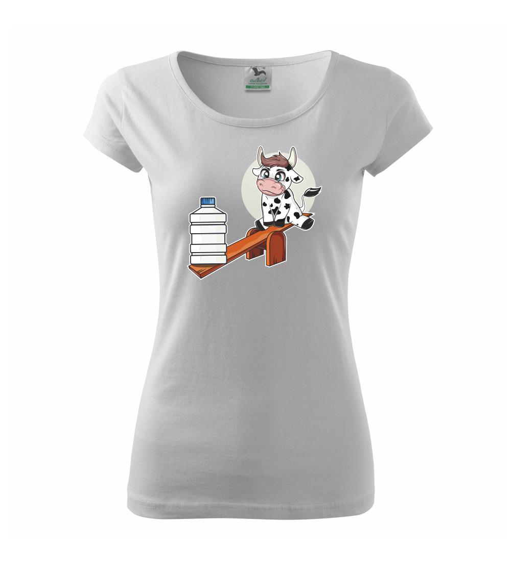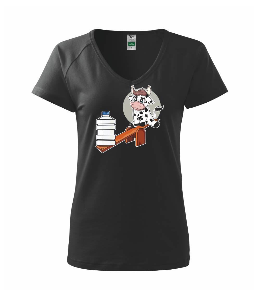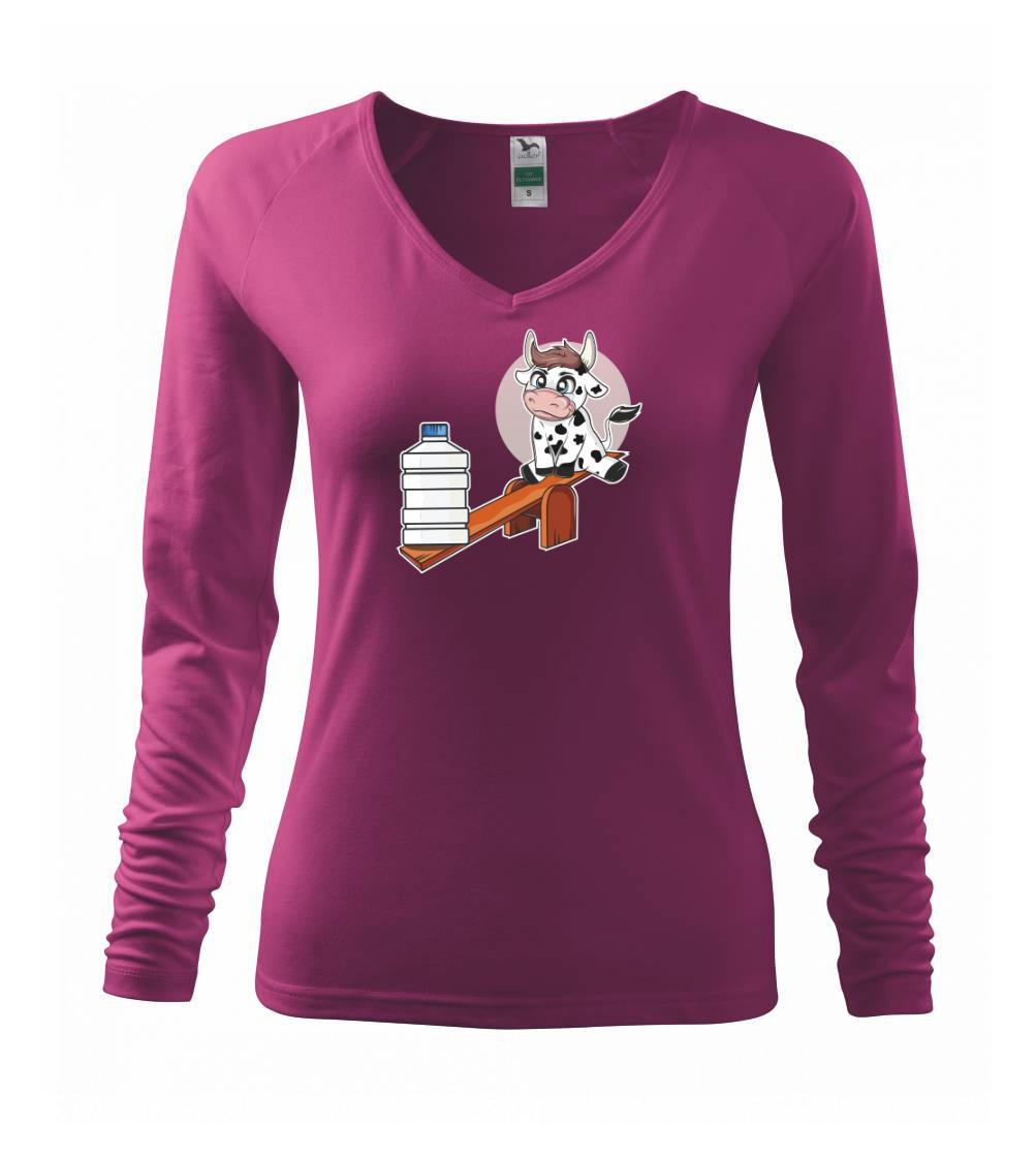 Triko s krávou, skvělý dárek třeba pro kámošku. Kráva na houpačce.