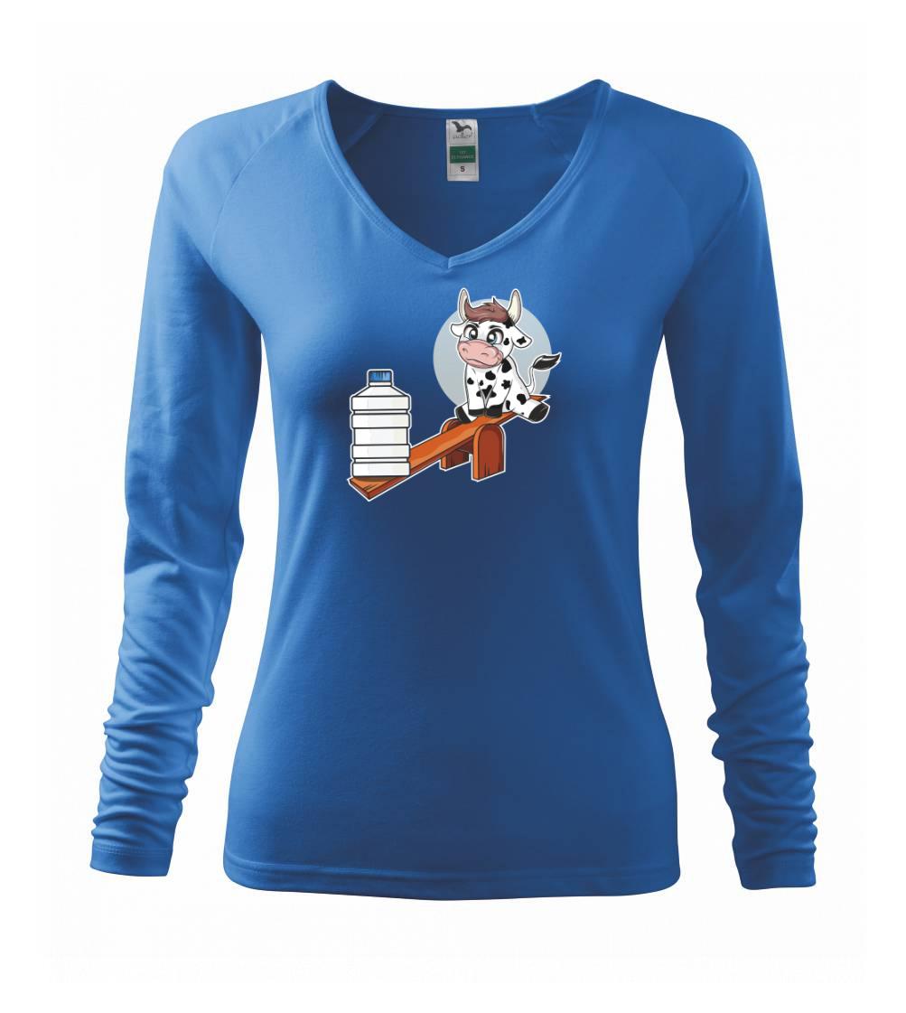 Triko s krávou, skvělý dárek třeba pro kámošku. Kráva na houpačce.