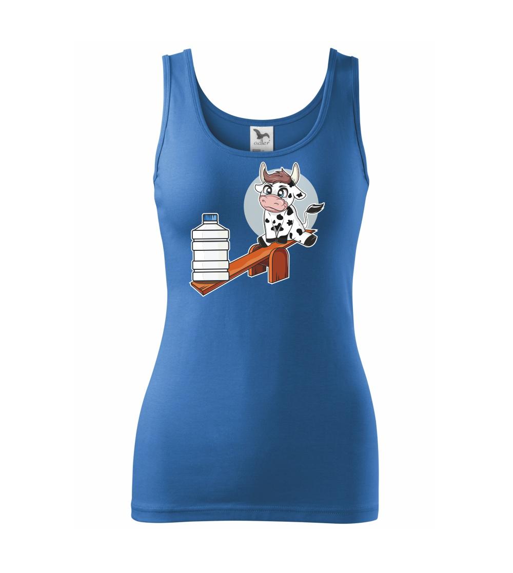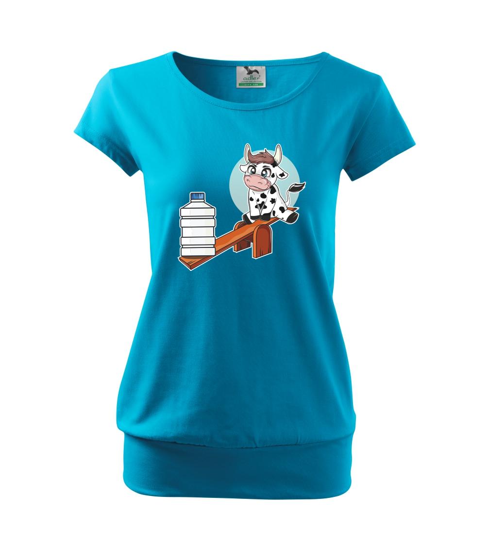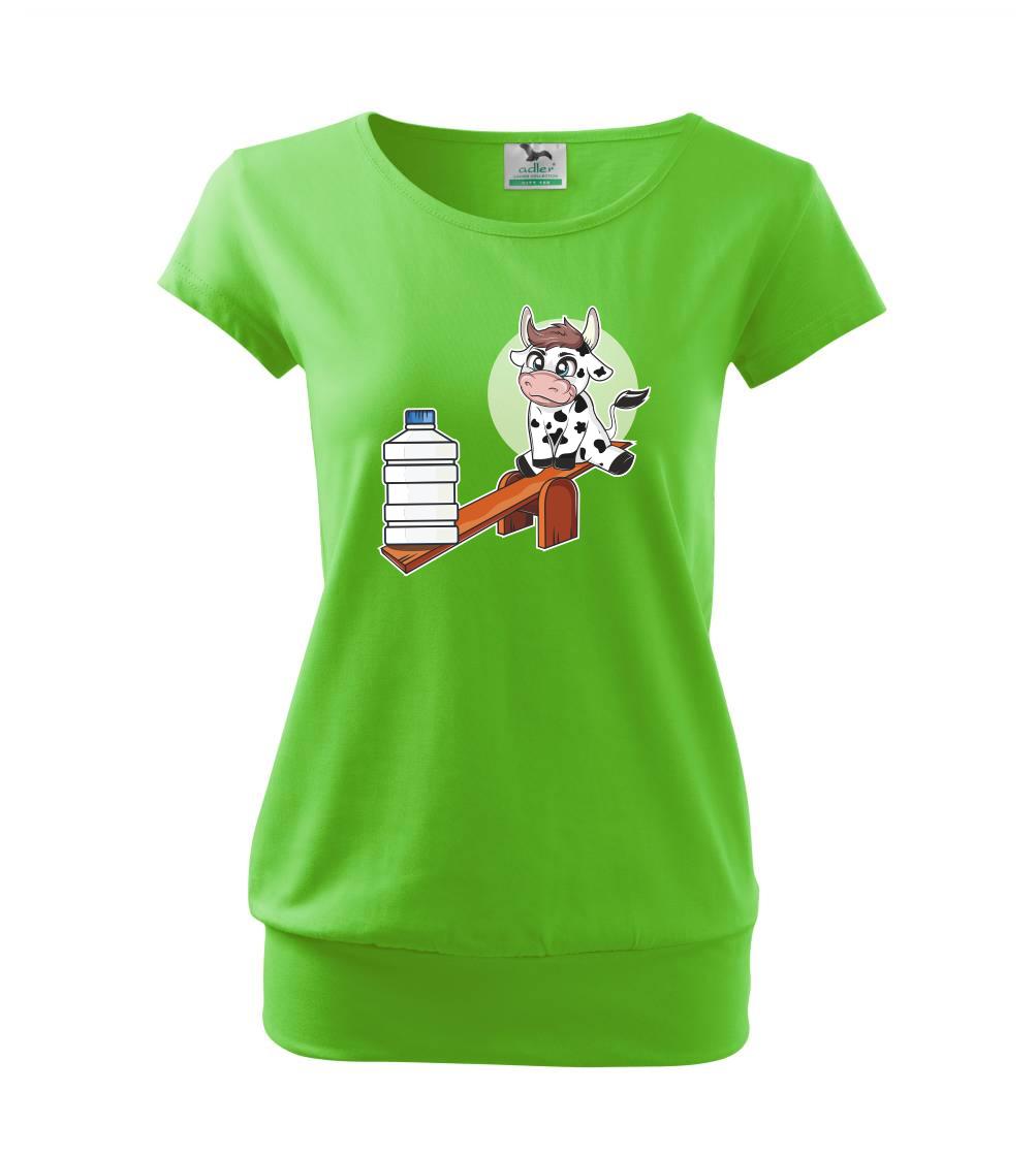 Triko s krávou, skvělý dárek třeba pro kámošku. Kráva na houpačce.