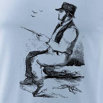 Kreslený pán s kloboukem na rybách