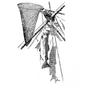 Kreslený podběrák a chycená ryba