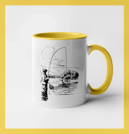 Kreslený rybář s podběrákem