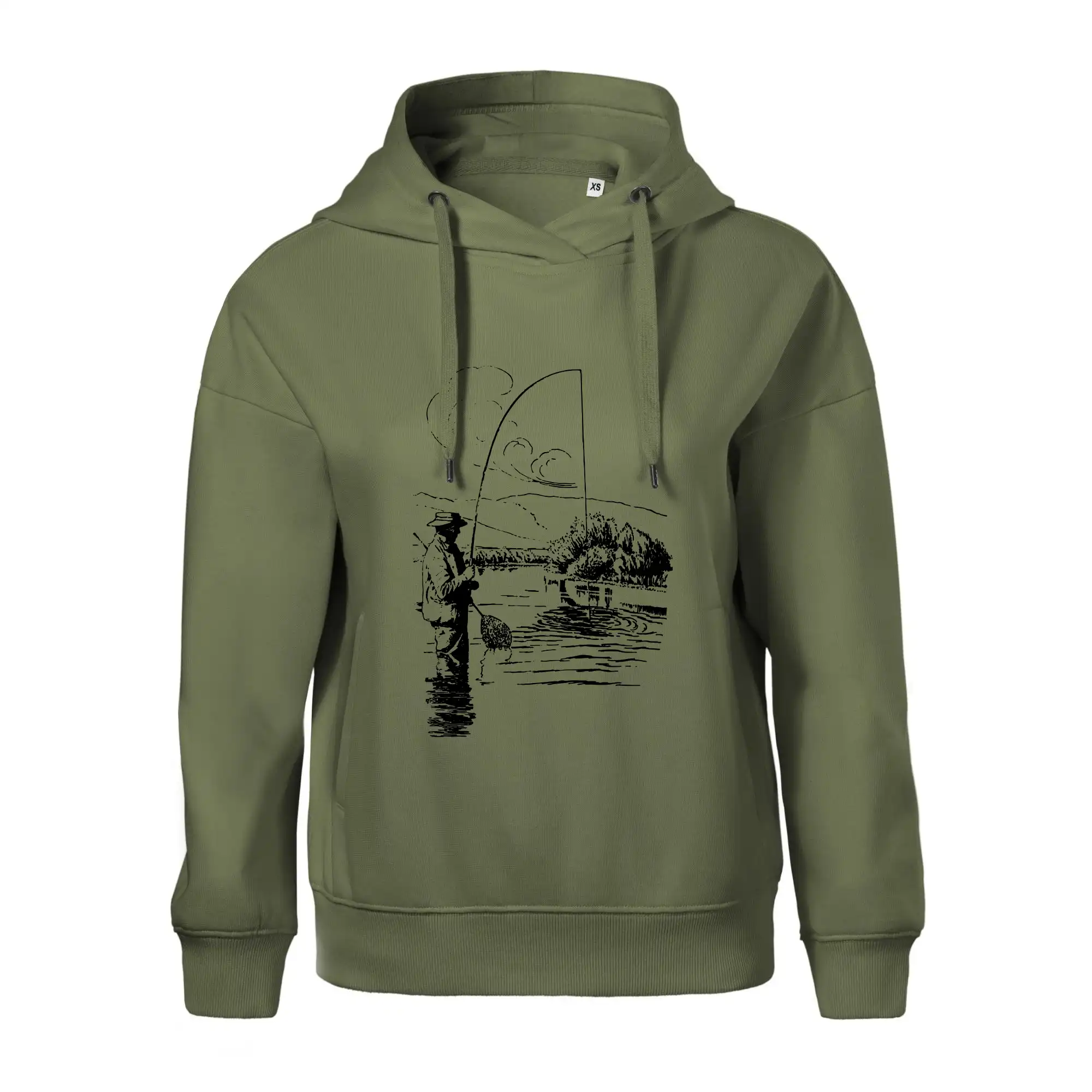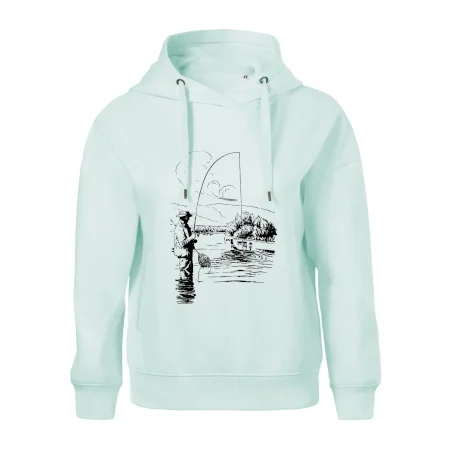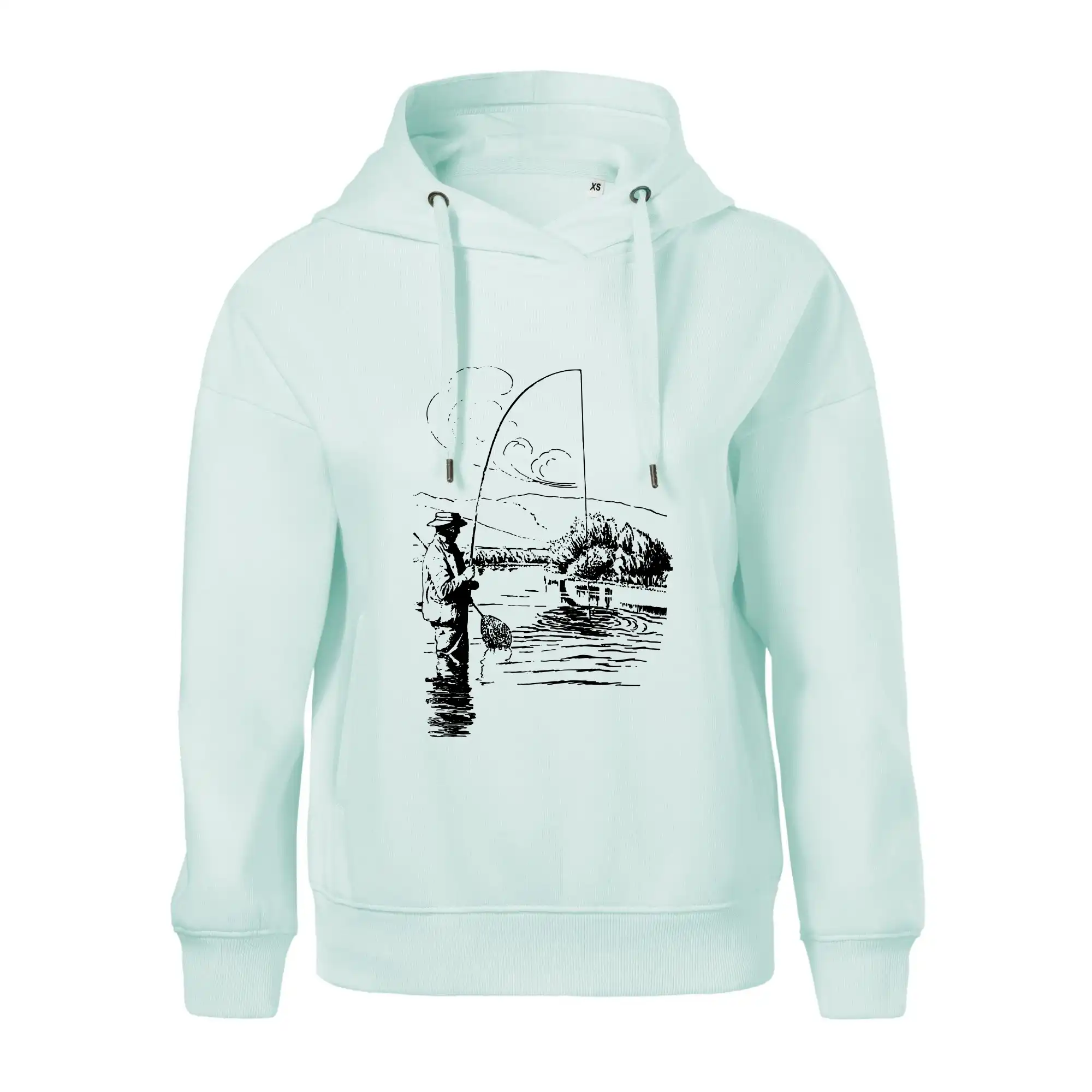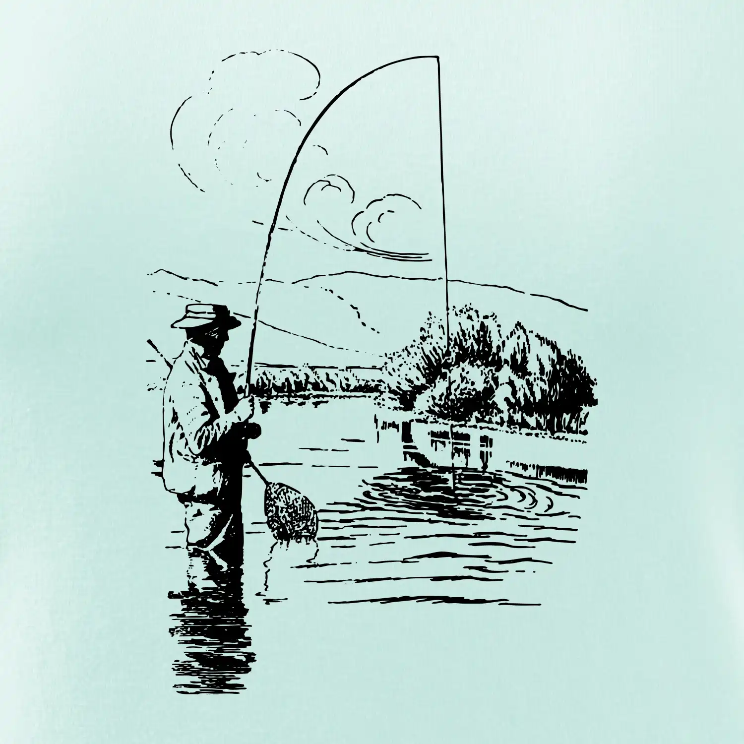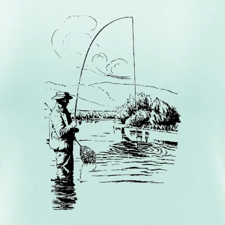 Kreslený rybář s podběrákem
