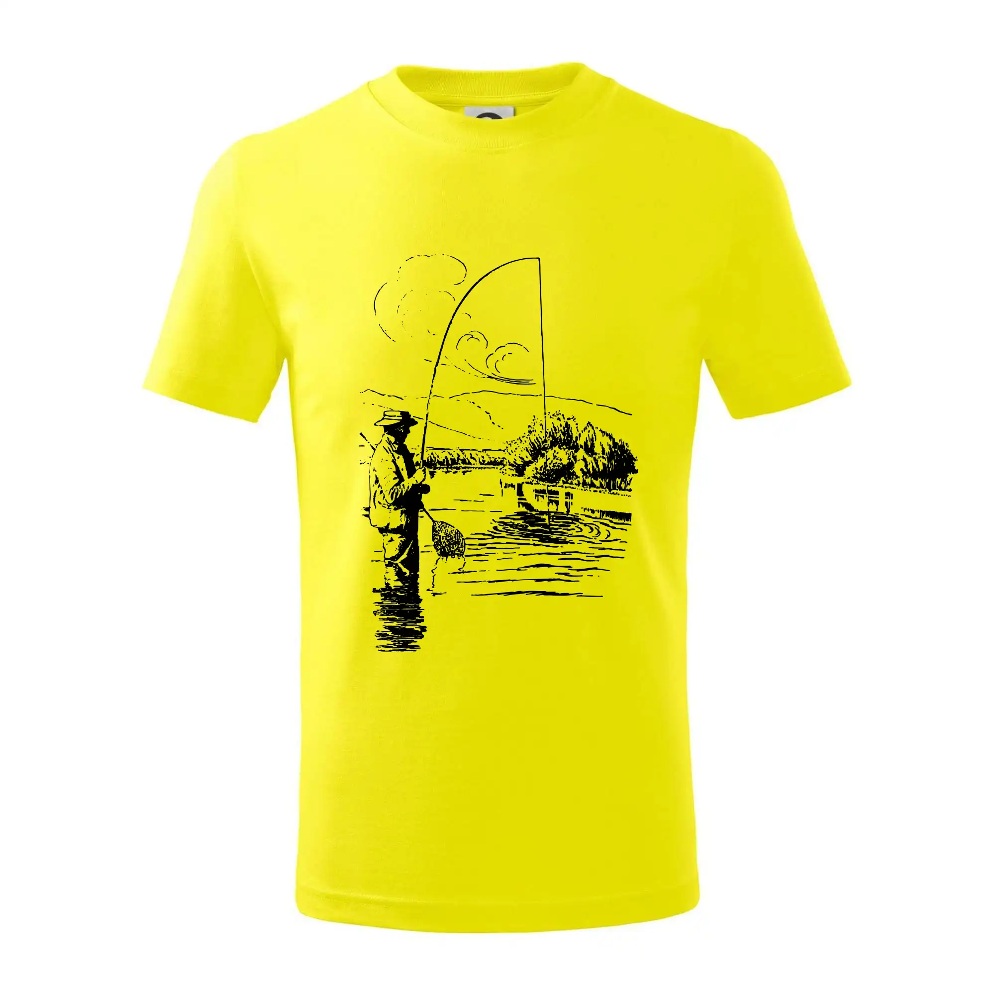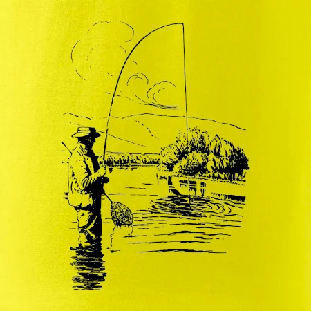 Kreslený rybář s podběrákem