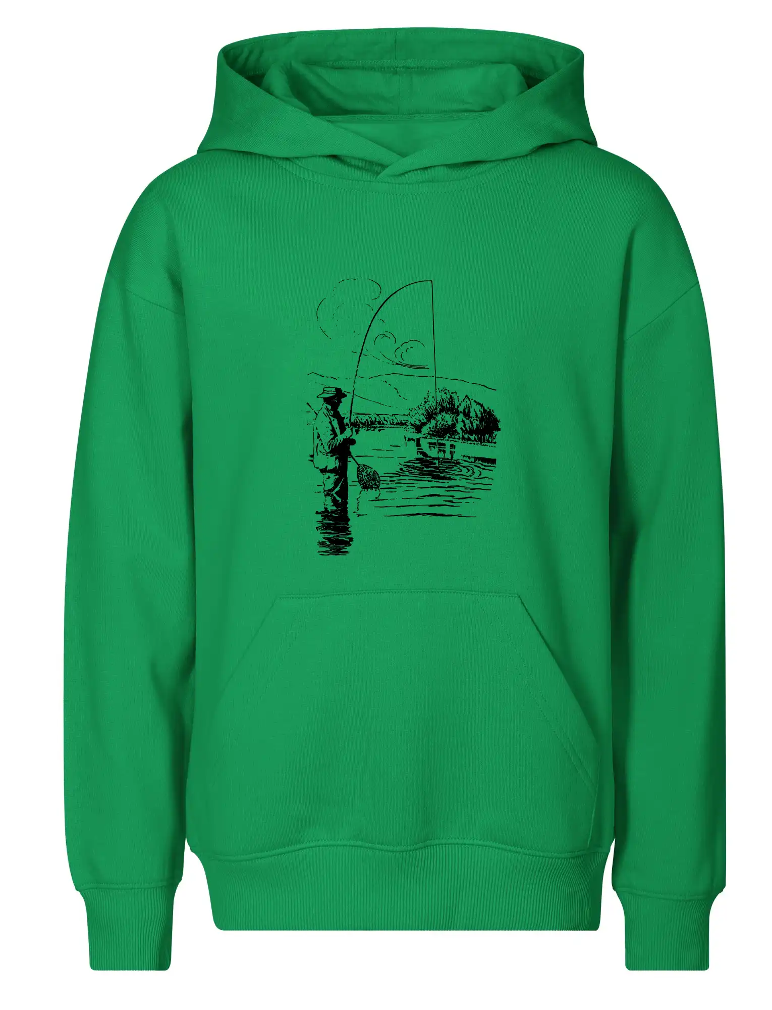 Kreslený rybář s podběrákem