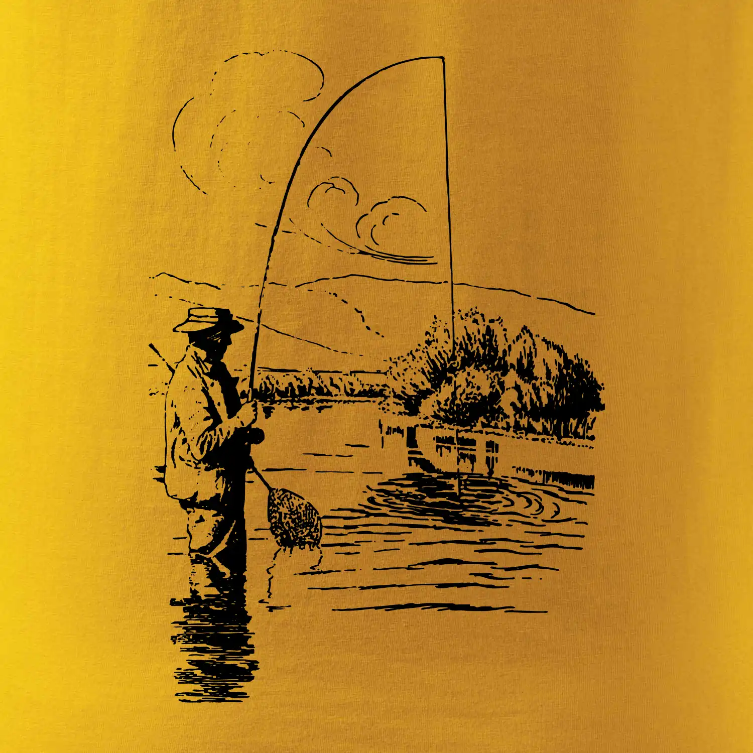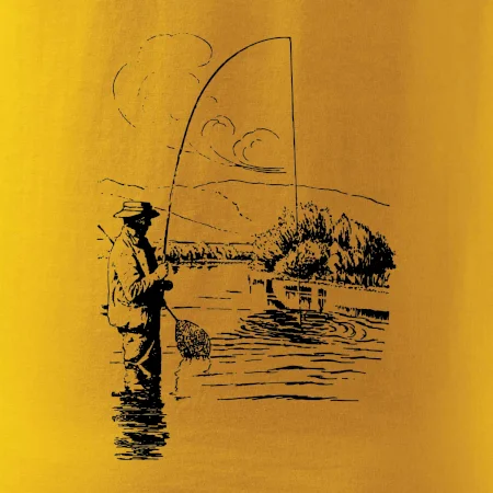 Kreslený rybář s podběrákem