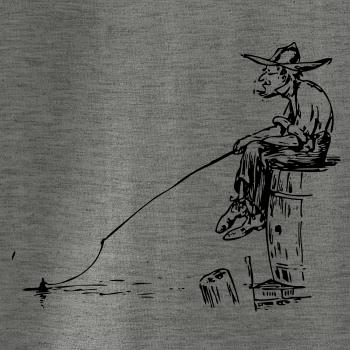 Kreslený rybář s vytaženými kalhotami