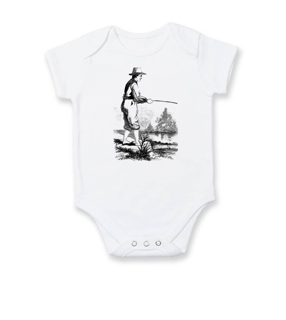 Kreslený rybář s vytaženými kalhotami