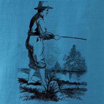 Kreslený rybář s vytaženými kalhotami