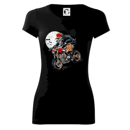 Kreslený vlk na motorce